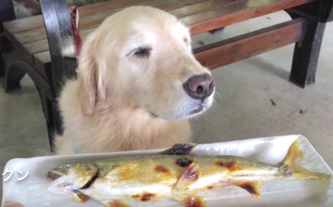 「アユ…おいしそう…Zzz」眠いけどアユは食べたい!ゴールデンの葛藤が可愛すぎて抱きしめたい【動画】