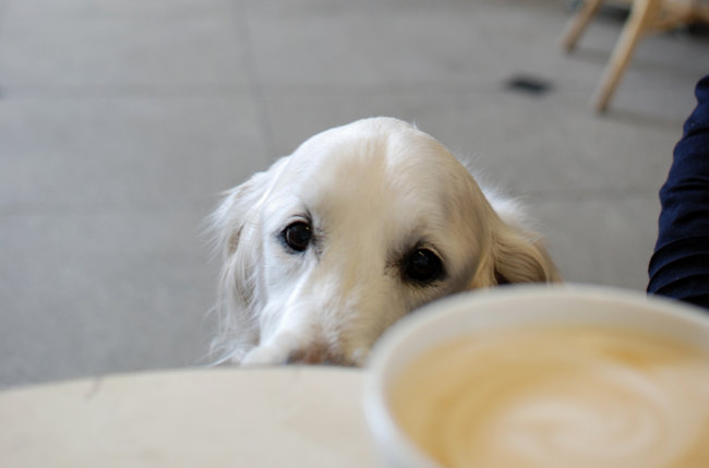 レトリーバーとカフェ、その壁はやっぱり高い?
