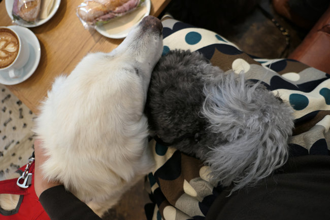 そのせいか我が家の犬たちは「カフェ」と言うと早足になって、一目散にお目当てのカフェに向かうようになってしまいました。
