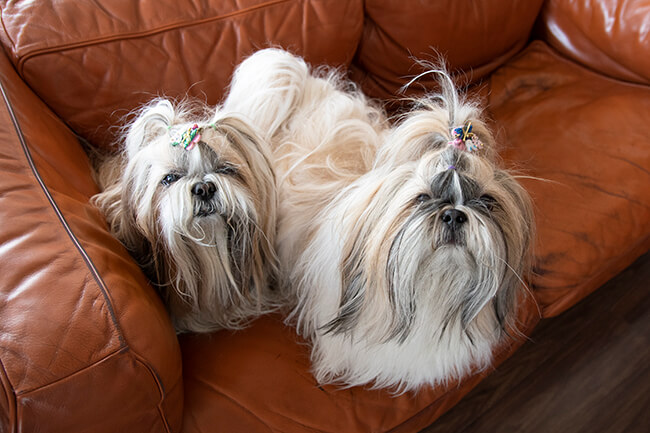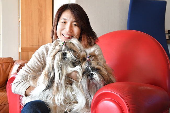自他ともに認める「犬バカ」のグラフィックデザイナー、きみしまゆきこさん現在の愛犬はシーズーのピエール6歳(左)とルドルフ2歳(右)