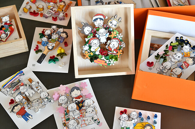 オリジナルイラストにはいくつかのタイプがあり、その中で一番の人気商品が「ポップアップアートボックス」です。