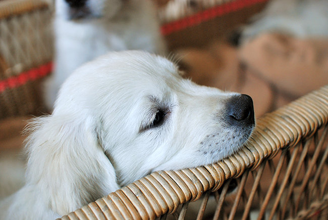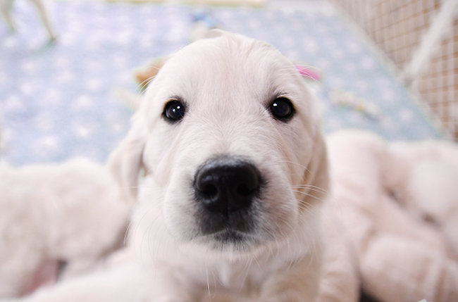ゴールデンレトリーバーのパピーを探してブリーダー巡りをしていた中で出会った白い毛色のゴールデン。