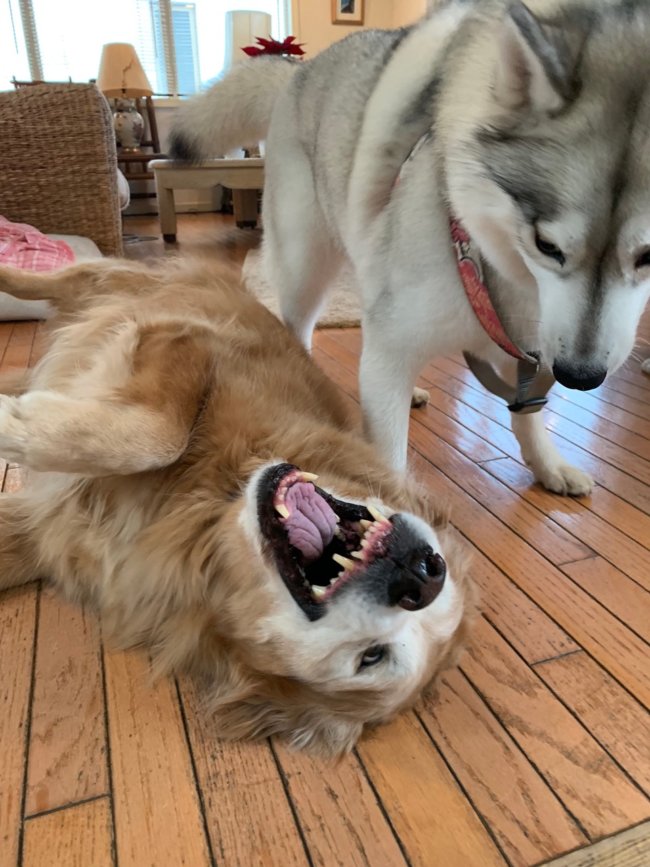 やんちゃな子犬に優しく寄り添い、大きな心で受け入れてくれたゴールデン。【ほっこり動画】