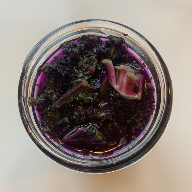 これは、紫色のカリーノケールとトマトと昆布を乳酸発酵させたもの。