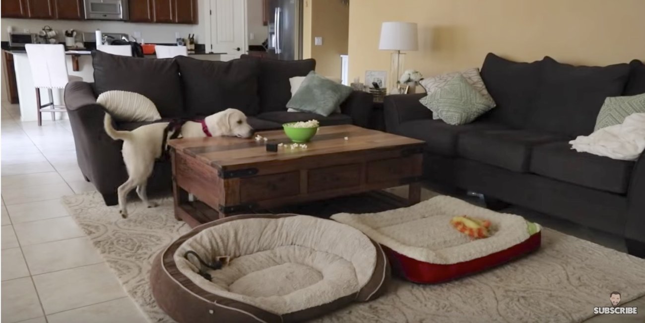 留守番中のラブラドール、“おやつの罠”にまんまとハマってしまう【動画】