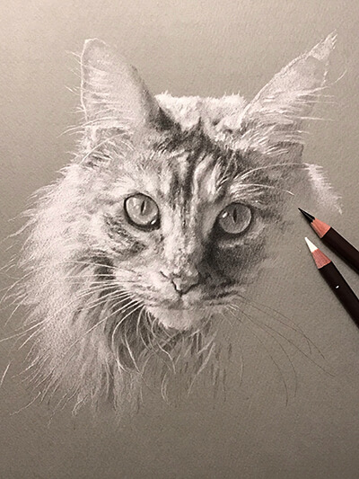 それらによって陰影を表現しているのが現在のペットの肖像画です。