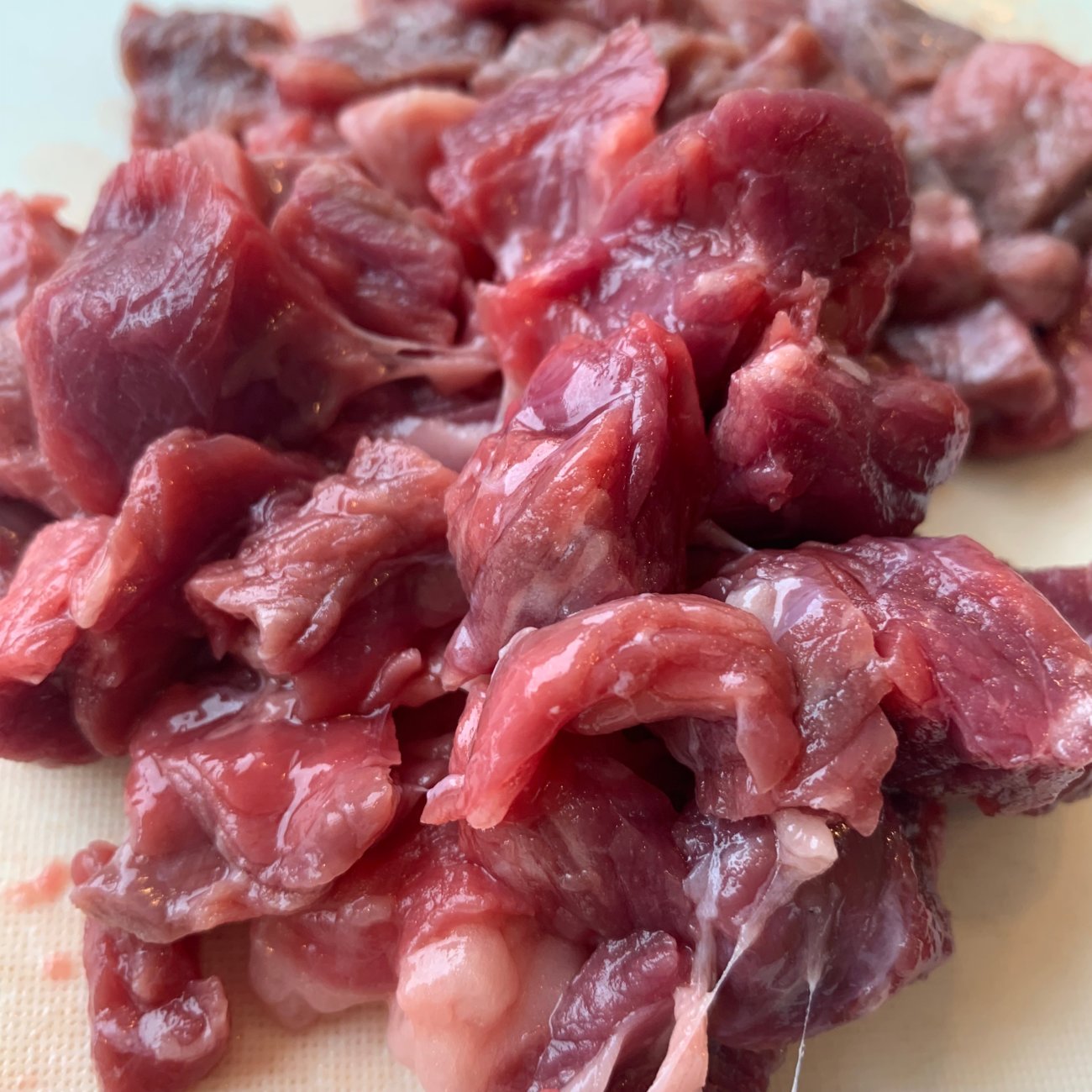 会社の近くのオーガニック・スーパーで、あまりに綺麗な牛スジを見つけたので、生のまま。