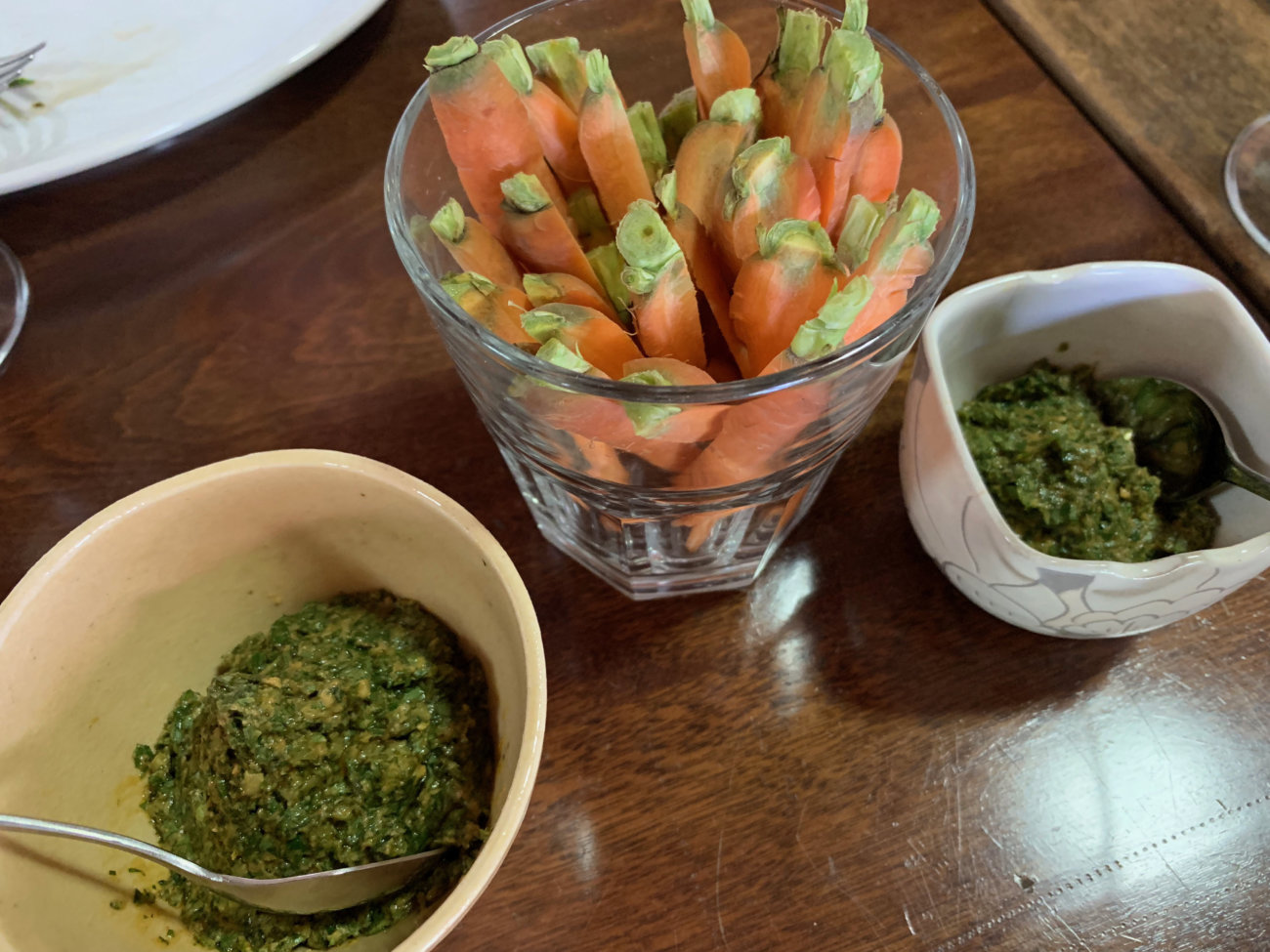 ★間引き人参に、三つ葉とひよこ豆のディップ