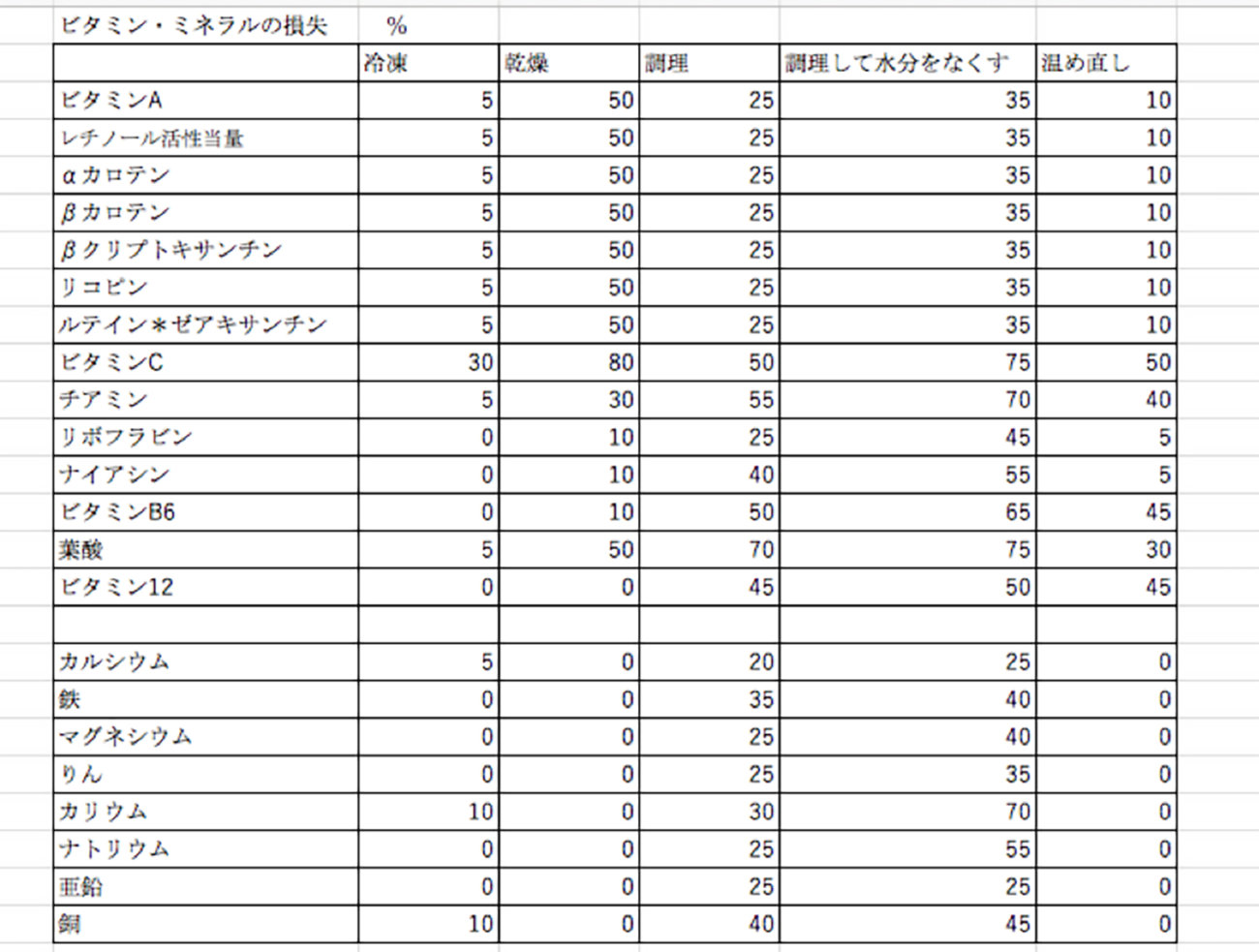 一方で、ミネラルやビタミンなどの栄養素は結構失われるのです。