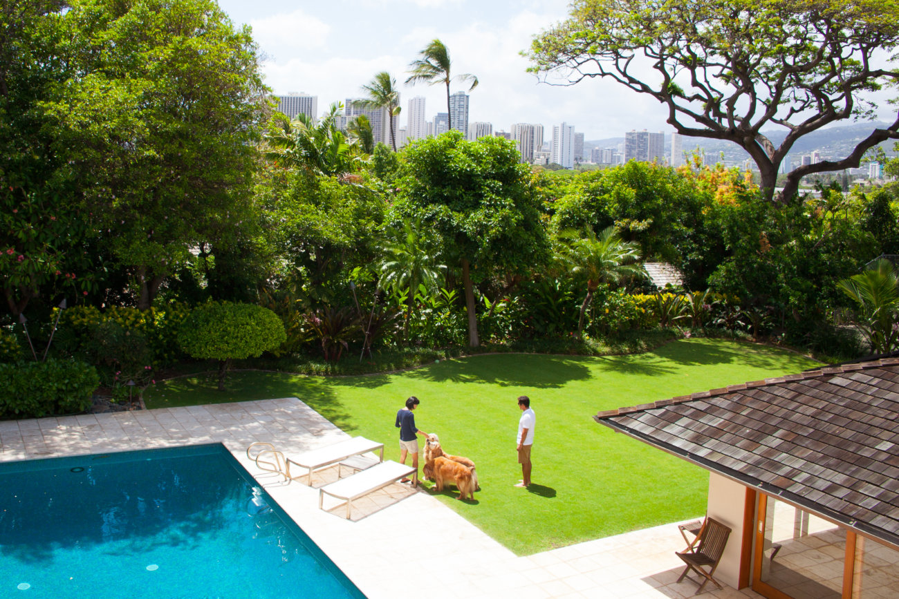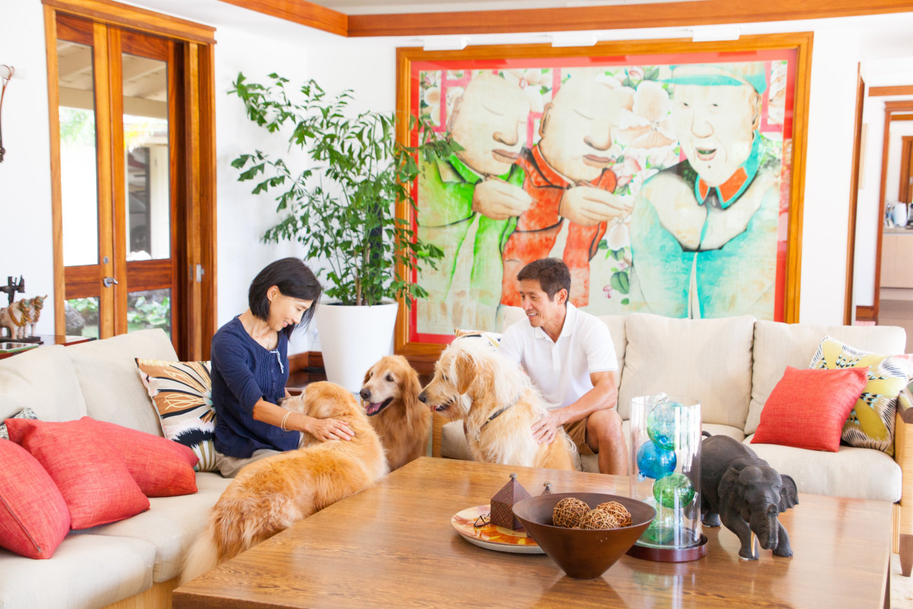 そう話すのは、ハワイ在住のヤマネ夫妻。現在も3頭のレトリーバー、ヘンリーとエマ、トミーと仲良く暮らしているが、夫妻にとって忘れられない存在なのが、初代のレト、カルヴィンとスージーだ。