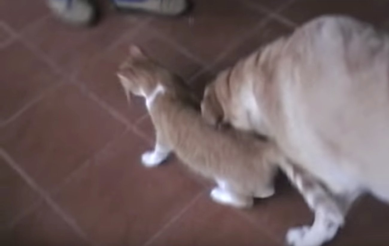 やんちゃな子犬に優しく寄り添い、大きな心で受け入れてくれたゴールデン。【ほっこり動画】