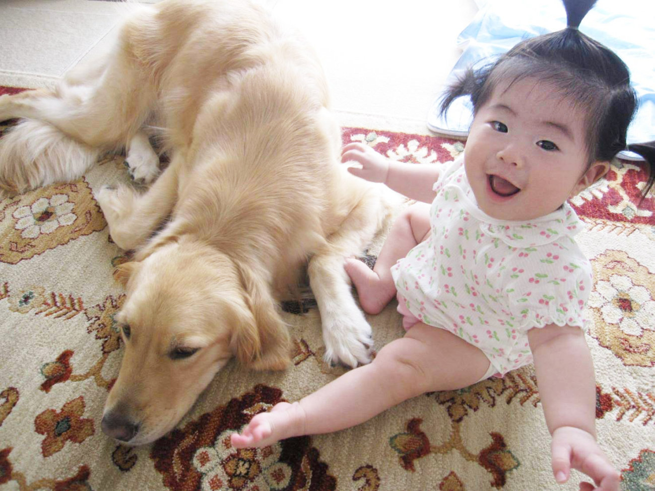 「赤ちゃんの時には静かに見守り、成長とともに、時にはケンカもしながらめいっぱい遊び、泣いている時にはずっと寄り添い...娘の傍にはいつもこの子がいました。ゴールデンの温かさが大好きです」