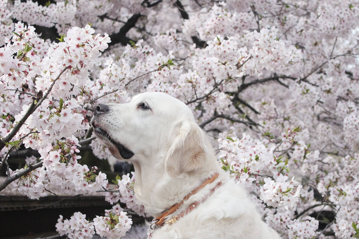 桜の花とさっちゃん「今年も一緒にお花見できた」という喜びの意味をこめて、毎年桜の下で写真を撮っている。
