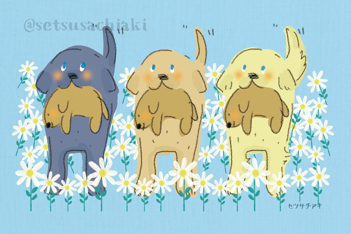 肩書きに「犬と暮らすイラストレーター 」とあるほど、犬との暮らしが当たり前になっているセツサチアキさん。
