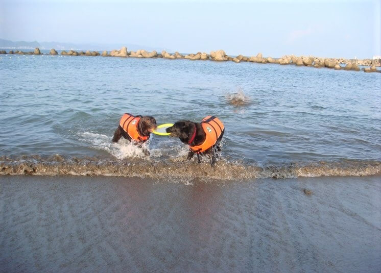 2頭はレトリーバーらしく、水辺で遊ぶのが大好き!