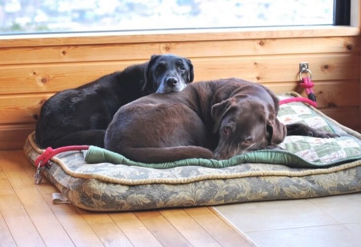 「なんとか譲渡先を探しましたが、我が家で2頭のラブラドールレトリーバーを引き取ることにしたんです。1頭はチョコラブのガイで生後10ヵ月でした。もう1頭の黒ラブ・ダイナは当時2歳。両方とも男の子です」
