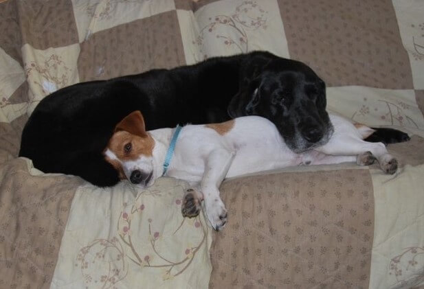 ガイはよき兄貴分で、よくゼンと取っ組み合って遊んでいましたが、途中でテリア気質全開になって唸りながら咬みつくゼンにタジタジで、耳から流血して悲鳴をあげたりもしていました」