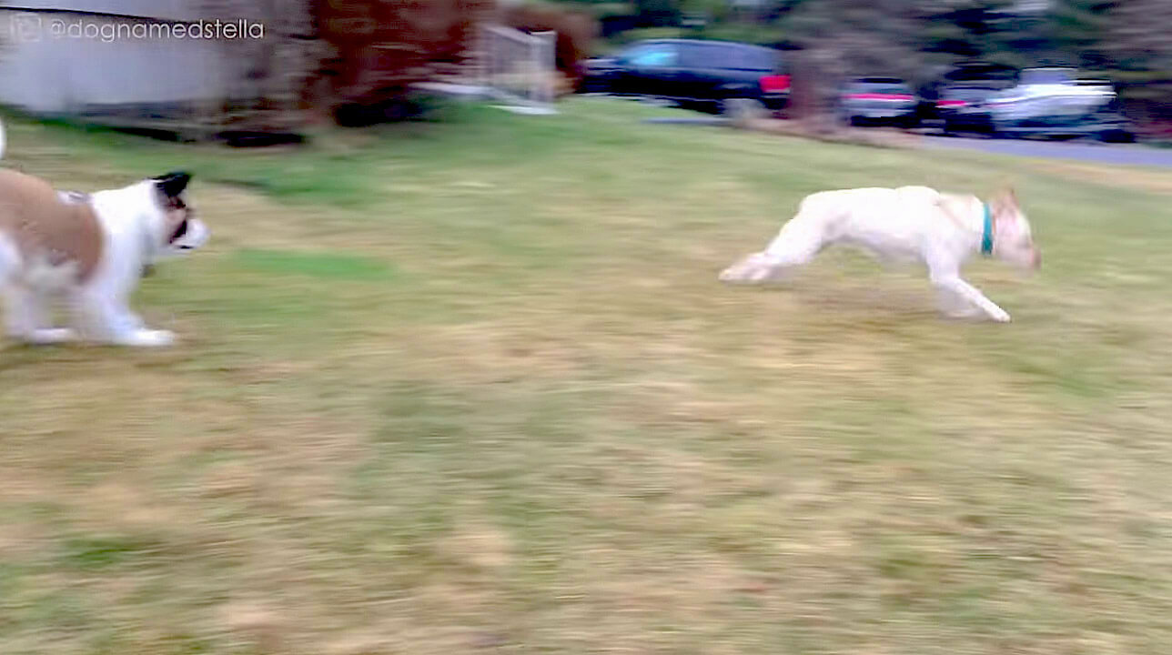 その後は、先輩であるステラがしっぽを振って近づき、そのまま遊びに誘います。